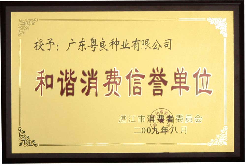 我们视诚信、责任和质量为企业的生命,并竭尽所能履行。本公司是广东省种子协会副会长单位,被中国种子协会评为“AA级信用企业”,公司连续四年在农业部和省市各级种子质量监督抽查中所有批次种子质量全部达标合格,种子质量零事故,分别被湛江市农业局、湛江市质量技术监督局、湛江市工商行政管理局和湛江市消费者委员会等单位授予“湛江市诚信守法活动先进单位”、“优秀农业品牌单位”、“和谐消费者信誉单位”、“湛江市农业龙头企业”等荣誉称号,“粤良种子,丰收开始”为广大农民朋友一致公认和信赖。